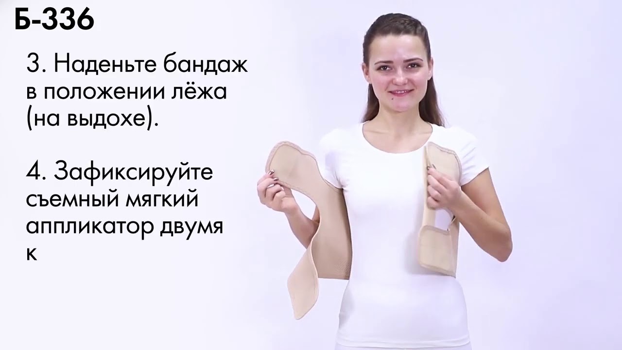 - Бандаж надеть в положении лежа (на выдохе)